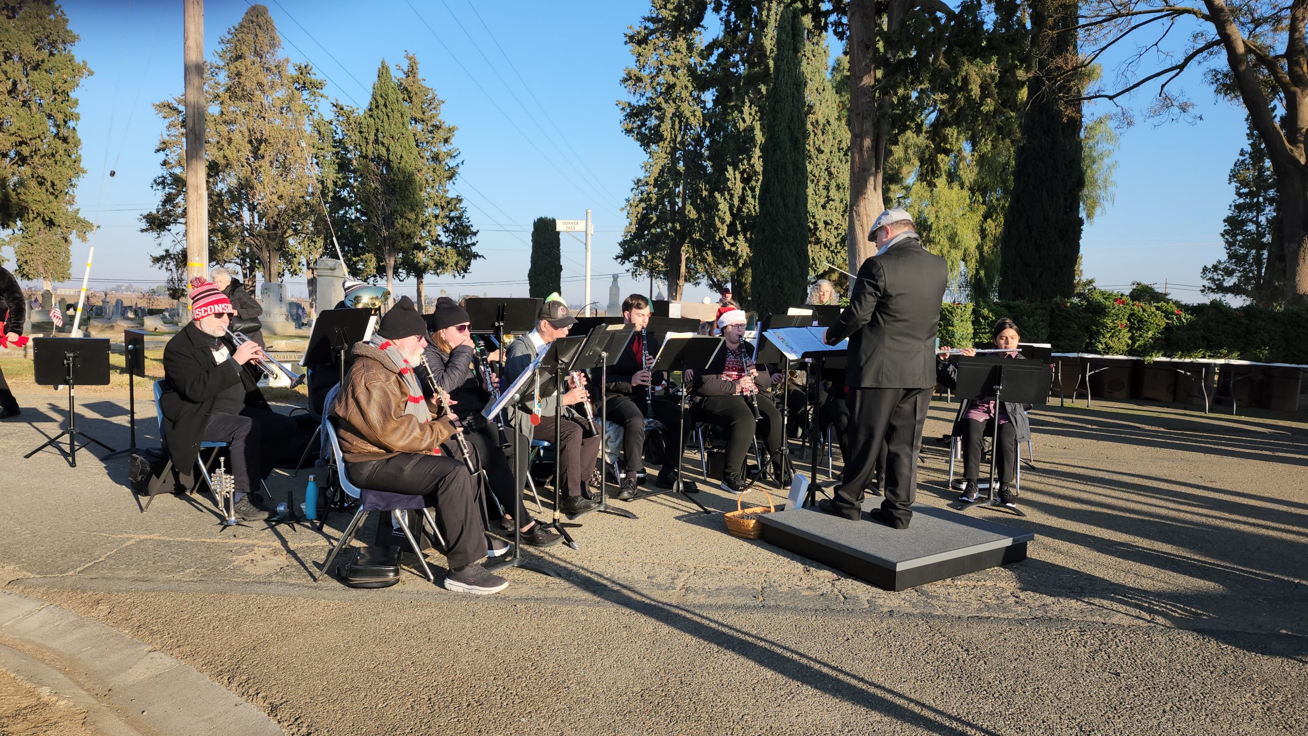 The music we played was a mix of commemorative and festive holiday pieces.  The final set was conducted by Courtney Emery, one of our clarinet players and the band teacher at Antioch High.  Thanks, Courtney!
